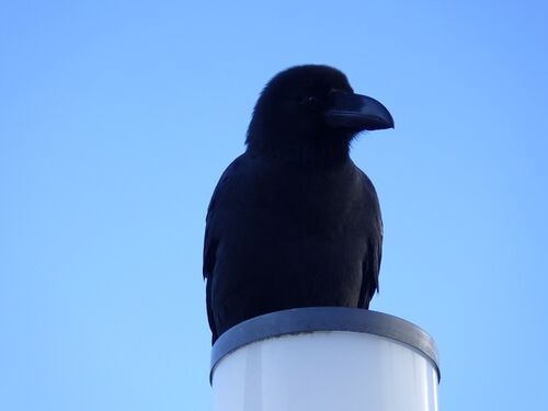 何百人もの人が行き交う朝8時 30 分の駅前広場で、黒い男とカラスが楽しげに会話していました。これってカラス使い。