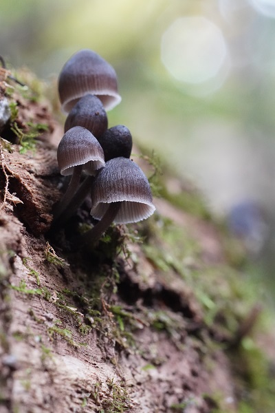 同じ森で見た小さなキノコ。傘の直径1センチ未満、これくらいのサイズが一番好きなのに、さっぱり図鑑に載っていない。同定できなくて名前がわからないままのキノコが私の写真フォルダに溢れています。歯がゆいよう。