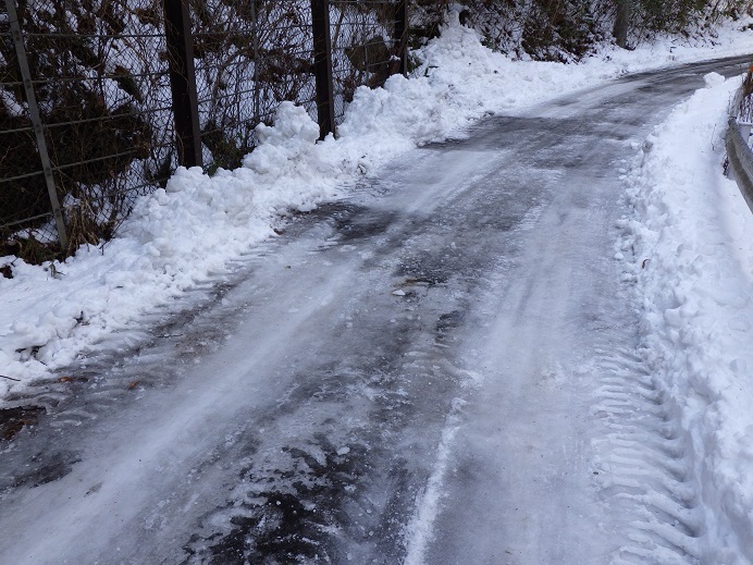 福島県境を目指していたら、林道がアイスバーンになり車を捨てました。北国の人にはどうってことないでしょうけどこちとら雪に不慣れ、無理はしない。