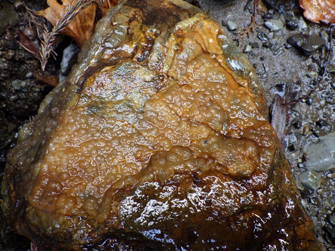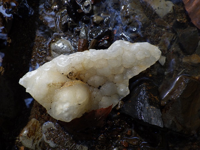 わああ仏頭状玉髄。沢の砂地にちょこんと乗るように。