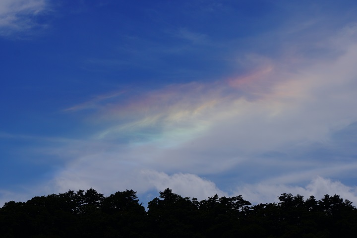 わあ、こんな景色があるとは。…… でも雲を見るクセで気付いてしまいました。このコンパクトカメラで撮った写真の上端。雲がうっすらと虹色になっているのを。